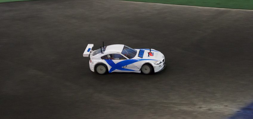 Nach einer kurzen Fahrerbesprechung wurden die Motoren eingebaut und die insgesamt 7 Fahrzeuge gingen zur technischen Abnahme, die hier nicht von einer einzelnen Person, sondern von allem Teilnehmern durchgeführt wird. Wer an einem der Chassis etwas entdeckt, darf meckern. Glücklicherweise war dies nicht der Fall und so startete das Rennen über 4 Stunden um kurz vor 16:00. Im Mittelfeld gestartet, fielen wir zu Beginn etwas zurück, was aber unserer Taktik geschuldet und nicht weiter schlimm war. Diese lautete möglichst fehlerfrei zu fahren und sich aus allem rauszuhalten. So kamen wir im Verlaufe des Rennens wieder weiter nach vorne und führten zeitweise das Feld an. Nach gut 25 Minuten wurden zum ersten Mal Akku und Fahrer gewechselt, was sich später als guter Zeitpunkt zum Wechseln herausstellte.