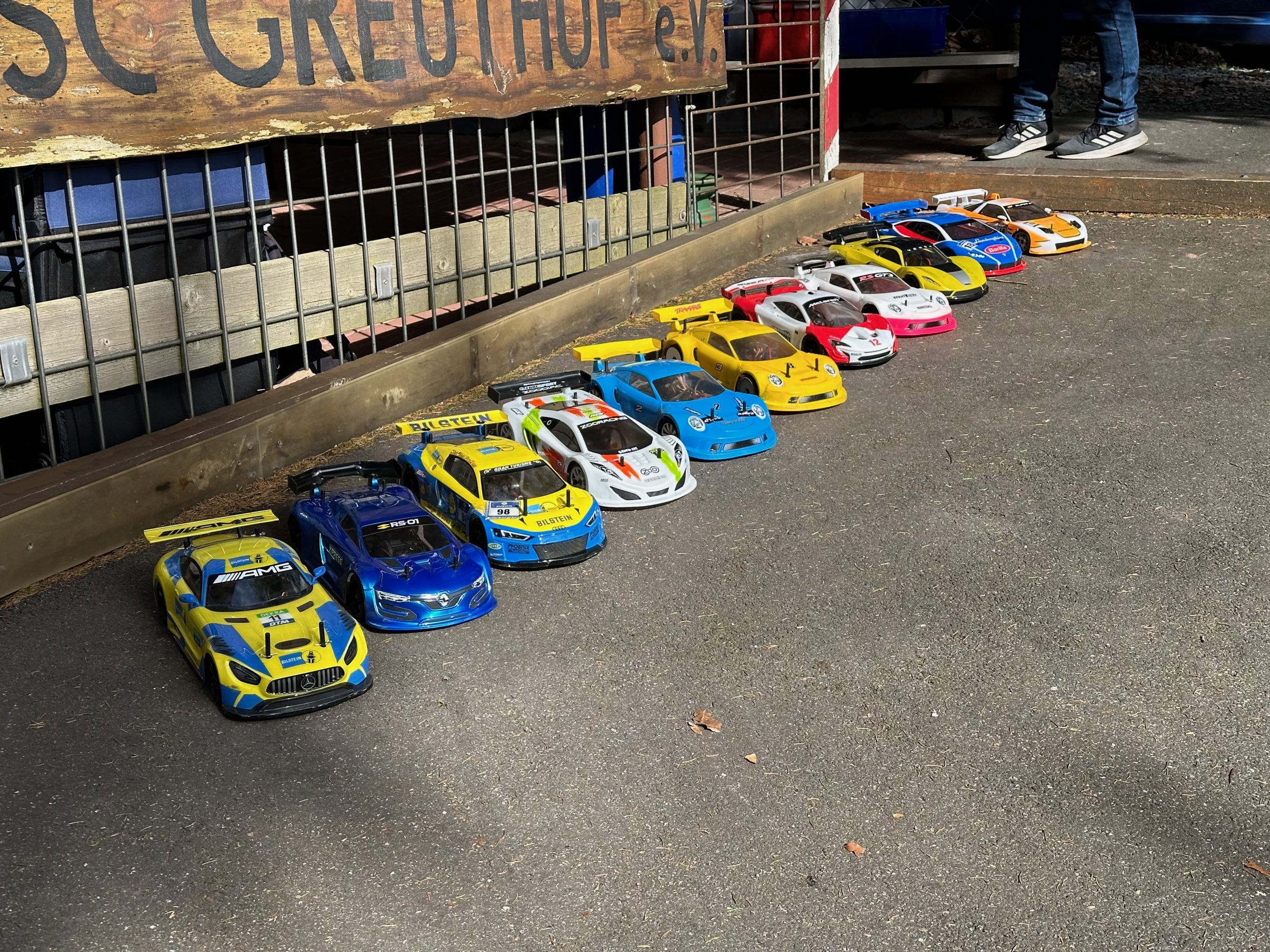 Am gestrigen Sonntag fanden sich rund 10 Fahrer in Greuthof ein und nutzen die gute Wettervorhersage, um die ersten Runden auf Asphalt unter die Räder zu nehmen. Gefahren wurde quer durch die Klassen, der Großteil jedoch testete hauptsächlich für unsere neue GT Cup Klasse. Hierbei erwiesen sich RCK und Ruddog Motor bei eingestelltem 19.500 RPM als absolut ebenbürtig. In den Rundenzeiten war kein Unterschied zu erkennen.